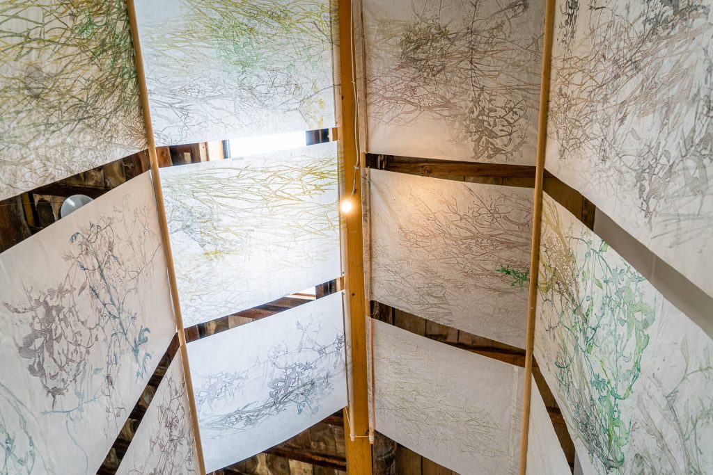 I am interested in the emotional and complex language of listening to landscapes. what passes through them and what I experience. I make field recordings and timed drawings often combining both to explore the visual and aural in my woodcuts, installations and drawings.